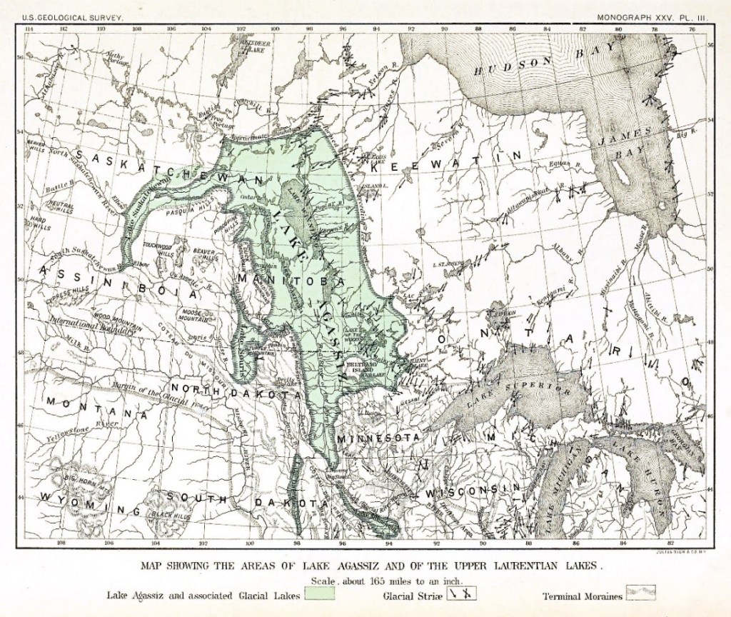 En Norteamérica, por ejemplo, se había formado un lago enorme, de unos 440.000 Km2, conocido como Lago Agassiz, nombrado así en honor al geólogo suizo Louis Agassiz, quien postuló que su origen se encontraba en la acumulación del agua de los glaciares. Sus paredes estaban formadas por gruesas murallas de hielo, últimos vestigios del período glaciar. El aumento de calor las derritió y entonces un inmenso caudal de agua helada se vertió al Atlántico, tanta que fue capaz de bajar la temperatura de los océanos y anular el efecto cálido de la corriente del golfo, esa bomba de calor que calienta Europa entrando por el Atlántico norte. El nivel del mar se elevó 120 metros, reclamando vastas extensiones de terrenos fértiles, donde se encontraban los primeros asentamientos humanos. El clima se volvió frío, hubo sequías, las cosechas se arruinaron y el hombre perdió su sustento y se vio obligado a desplazarse en busca de mejores condiciones de vida, convirtiéndose esos grupos en los primeros refugiados climáticos.
